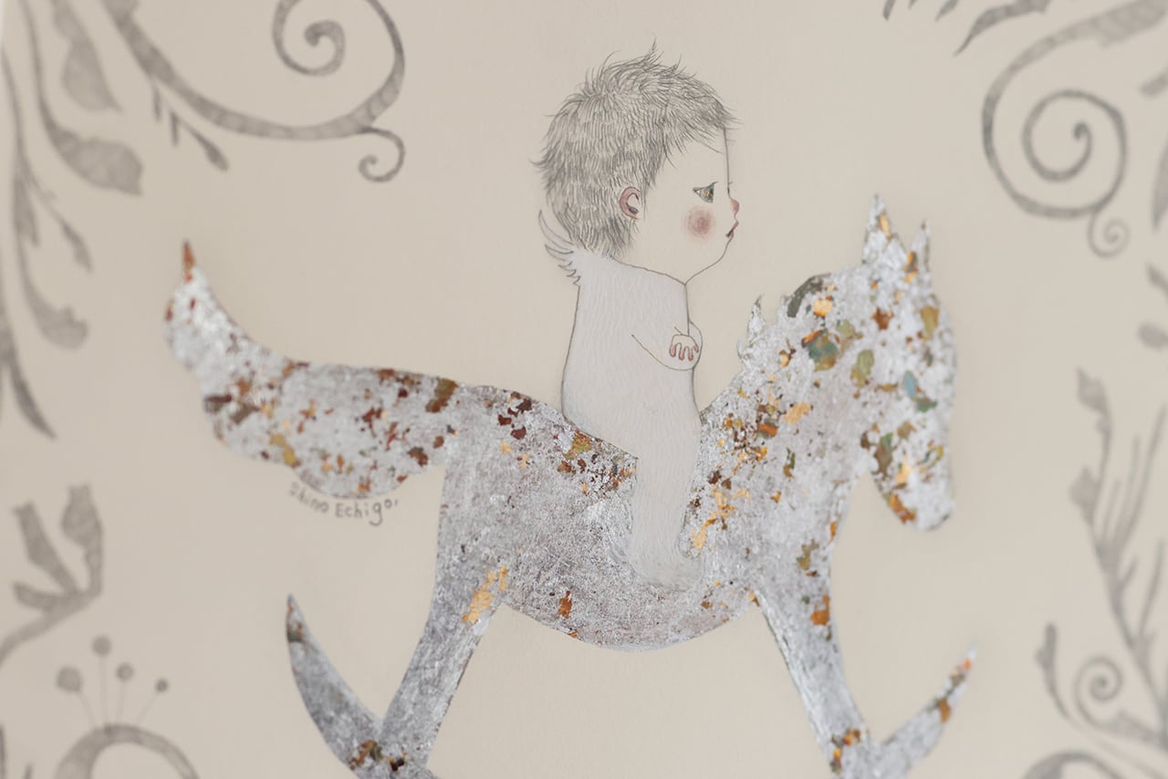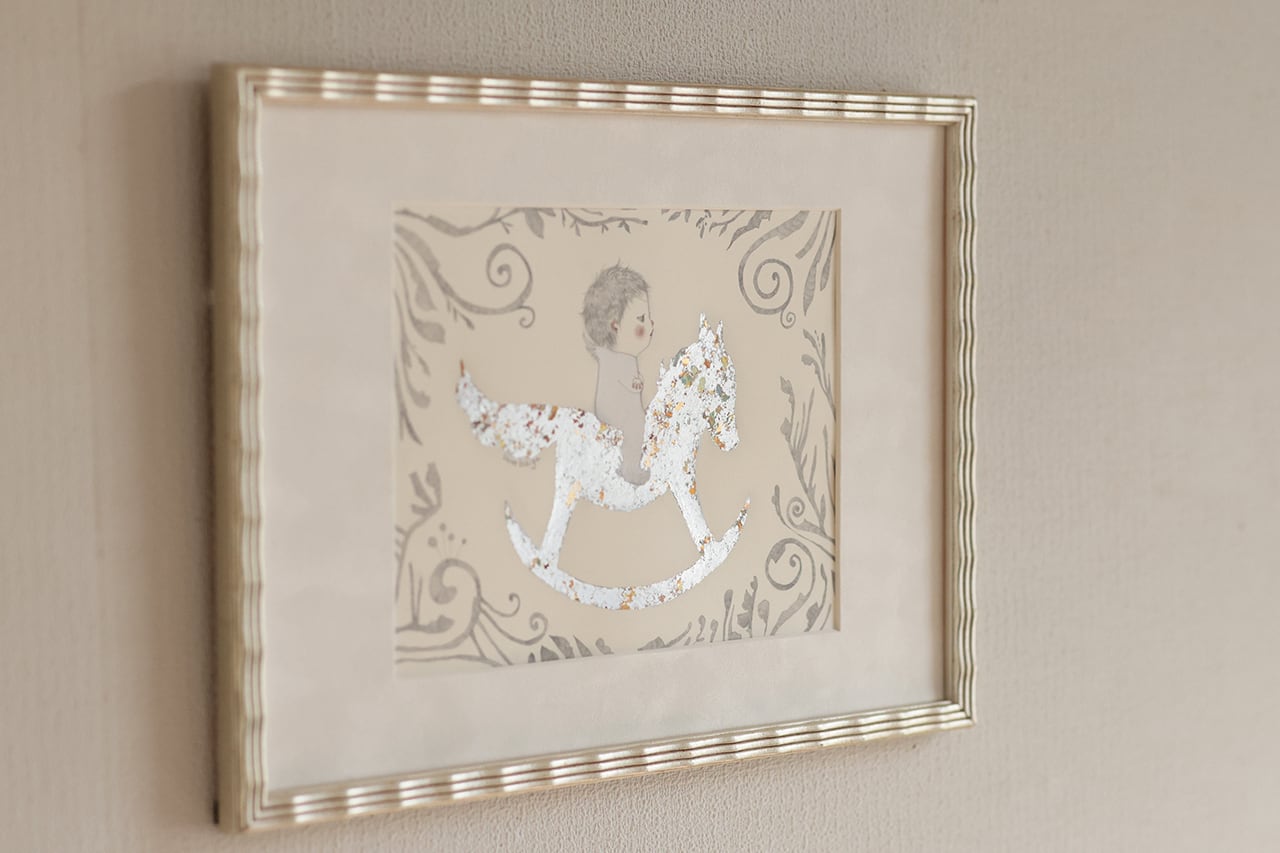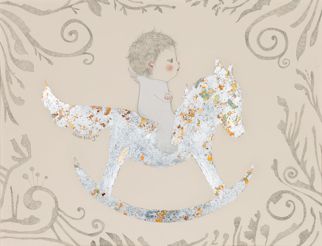 技法 : 鉛筆、ホイルフレーク、アクリル絵具、紙