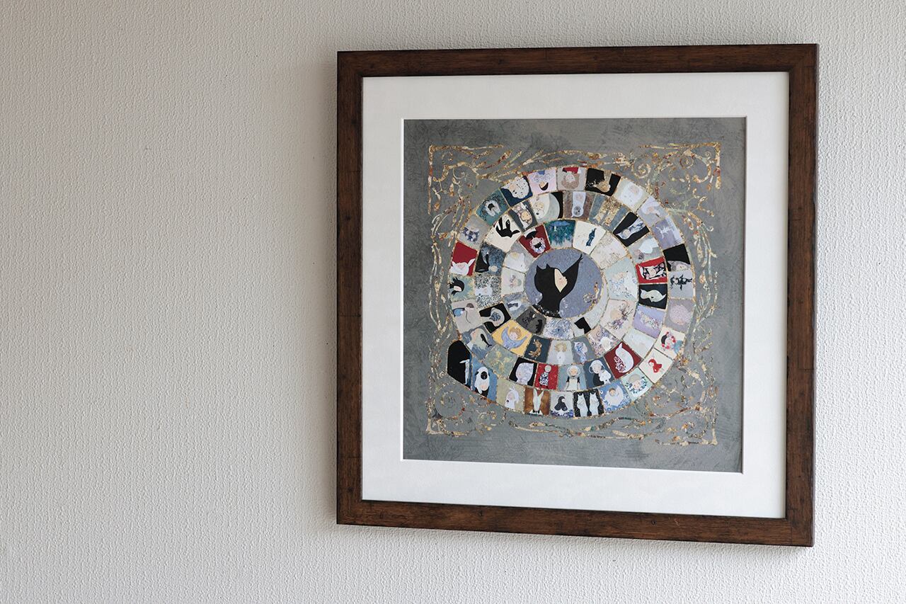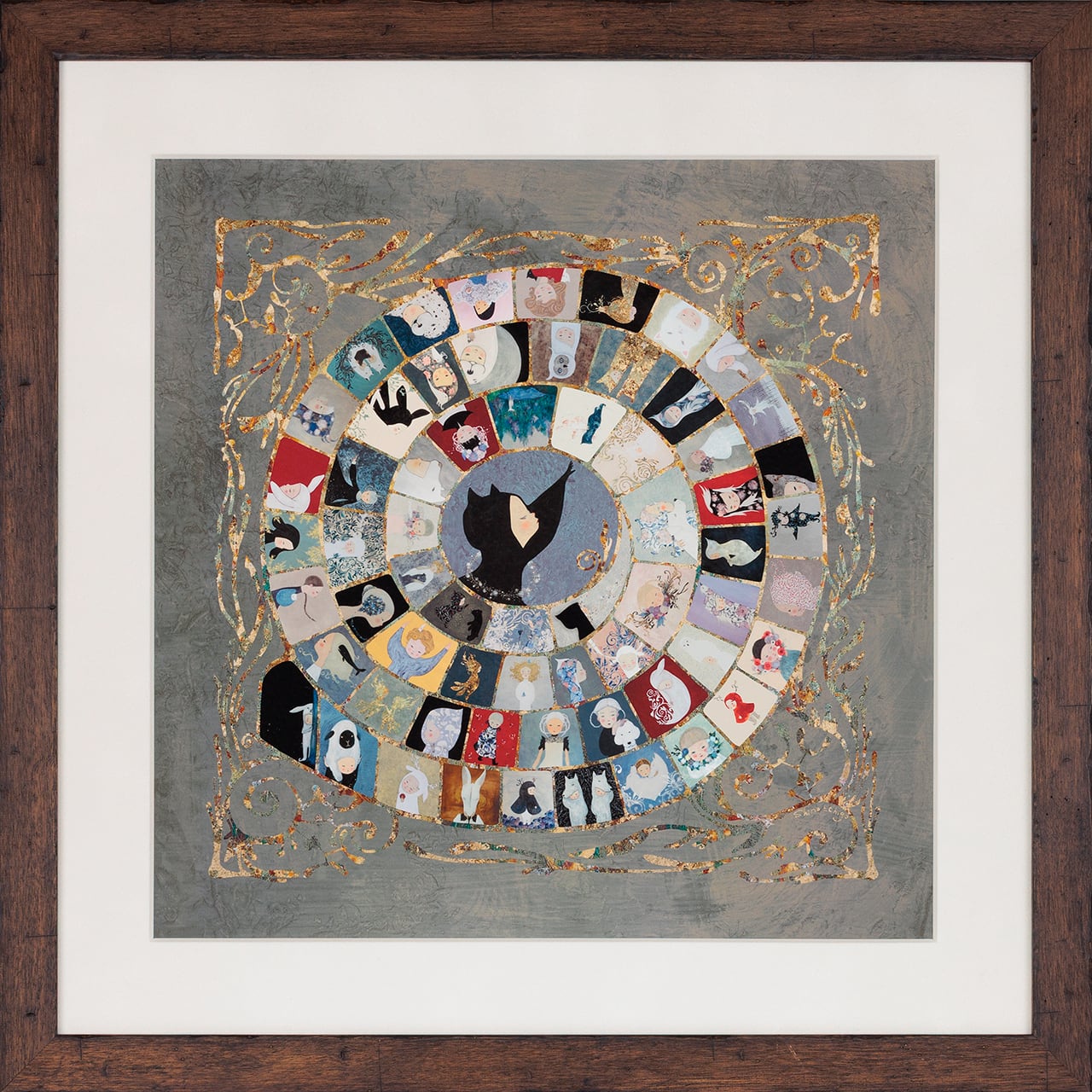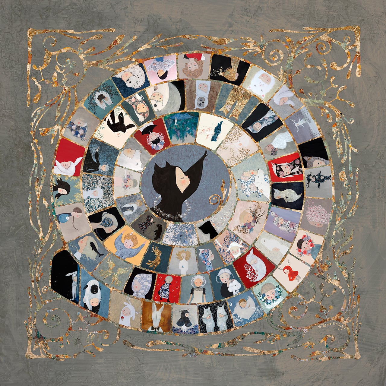 「螺旋」は世界の様々な文化の中に見出される形です。ヨーロッパでは最も古典的なボードゲームである「がちょうのゲーム」もそのひとつで、「反時計回りの螺旋形」と「63マス」という決まり事の中に人間の生が象徴的に散りばめられたそのフレームは、芸術作品としても不思議な魅力を放っています。東北学院大学教授の佐伯啓先生とデザイン編集の菊池健一さんと三人で創作した一枚の作品集のようなジークレー印刷作品です。
