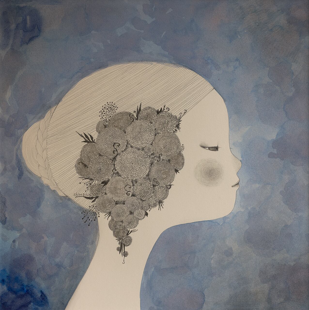 作家より一言「新作未発表作品です。珍しくインクを使いブルーにこだわって描きました。」