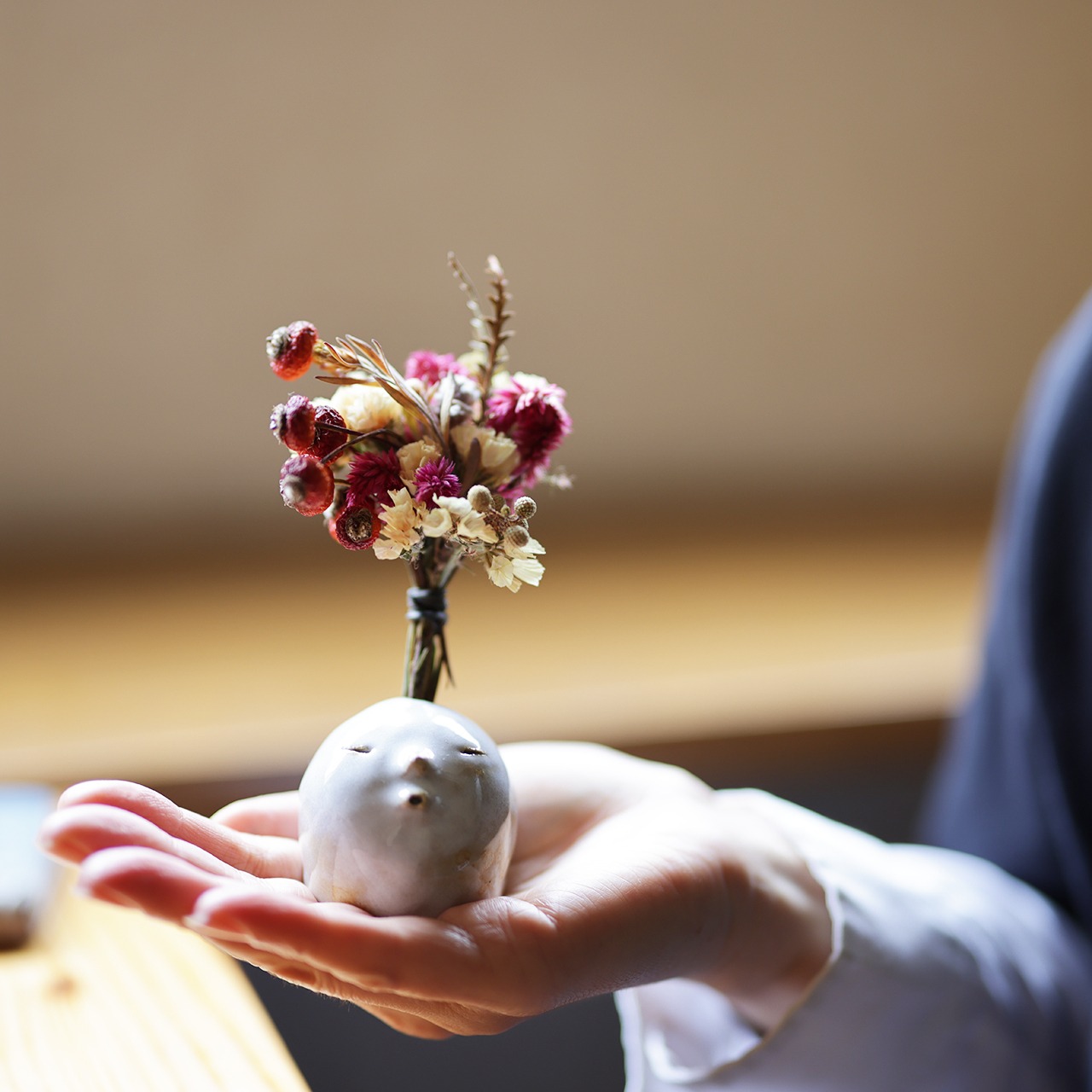 作家より一言「可愛がって頂けるお方のもとで暮らせたら幸いです。少しお水も入るので一輪挿しにもできます。」