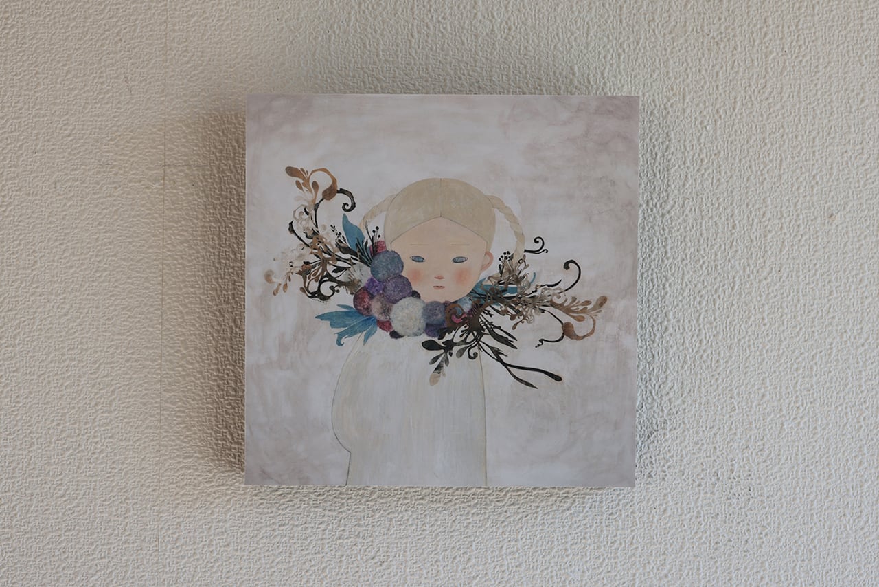 作家コメント「新作「歩歩」は秋保の杜 佐々木美術館&人形館10周年リレー展の越後しの個展「祭草の歩み」にて初展示です。原画は少し大きいのですがウォール・デコはかわいいサイズです。」